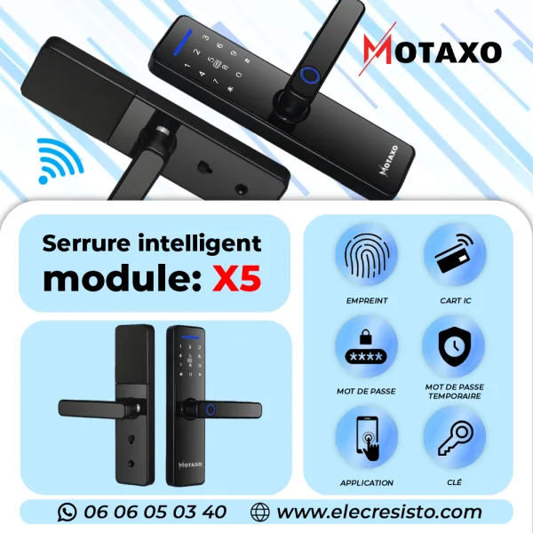 Découvrez la Serrure Intelligente X5 de MOTAXO, conçue pour une sécurité domestique optimale au Maroc.